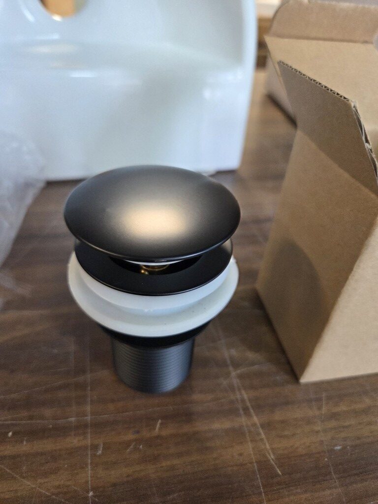 Geef je wastafel of waskom een moderne, luxe uitstraling met deze mat zwarte afvoerplug. De stijlvolle afwerking in mat zwart past perfect bij hedendaagse badkamertrends en combineert moeiteloos met zwarte kranen en accessoires.