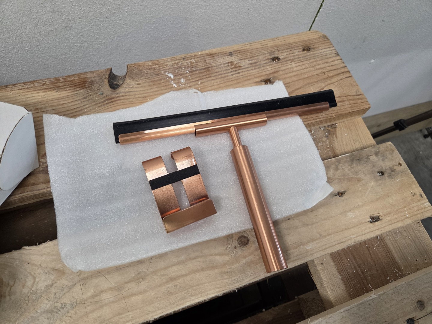 Combineer functionaliteit met design – met deze koperkleurige badkamer trekker blijft jouw douche fris én stijlvol.