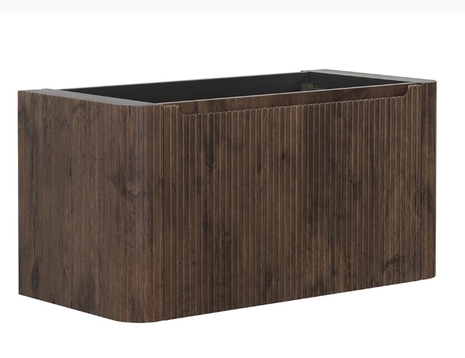 Badmeubel Bruin Eiken met Ribbel Front – 100 x 47,5 cm met mat wit solid surface wastafel met 1 kraangat