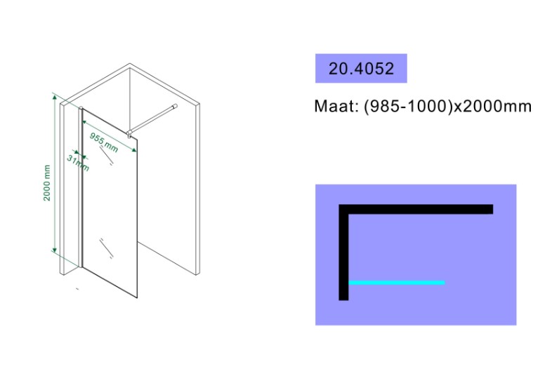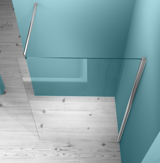 De douchewand wordt geleverd met een chroom muurprofiel, waardoor installatie eenvoudig en netjes kan worden uitgevoerd. Geschikt voor plaatsing op zowel een douchebak als direct op de tegelvloer.