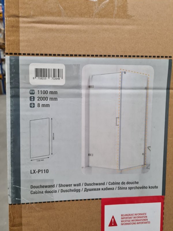Douchewand 110 x 200 cm helder glas (zie de tekst)
