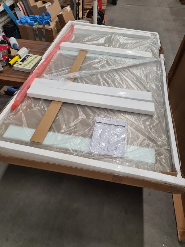 Let op: deze wand heeft geen bevestigingsklemmen en stabilisatiestang. Het is puur het glas. Wij hebben hier ook geen onderdelen voor (anders hadden we er zelf een complete wand van gemaakt;-))