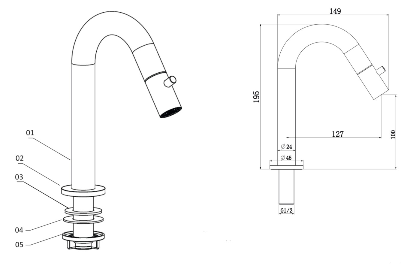 Fontein kraan Mila Gun Metal grey Exclusive Opbouw 1/2′