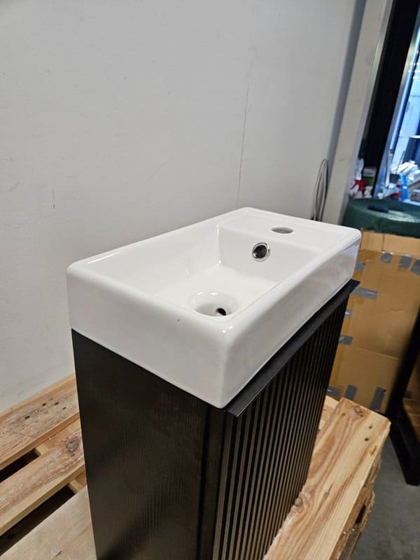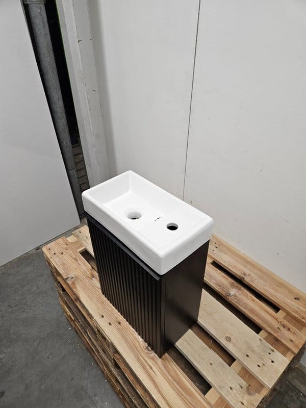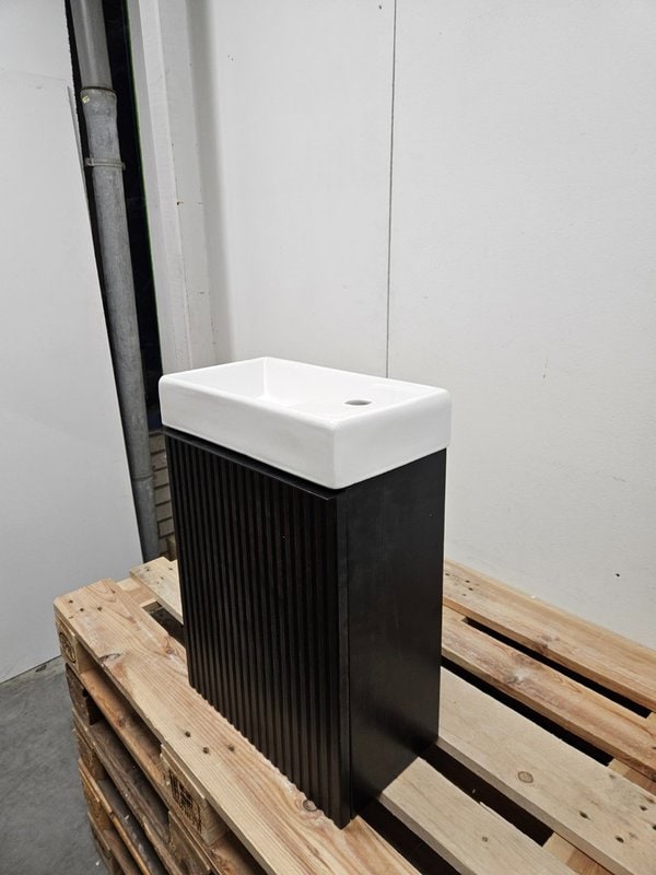 Fonteinmeubel 40 x 22 x 60 cm mat zwart verticaal reliëf met polybeton fontein