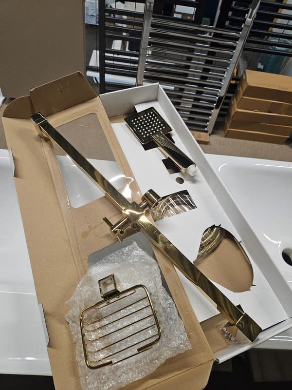 Glijstang set Douche Mila Goud met 3-standen handdouche zeephouder vierkant