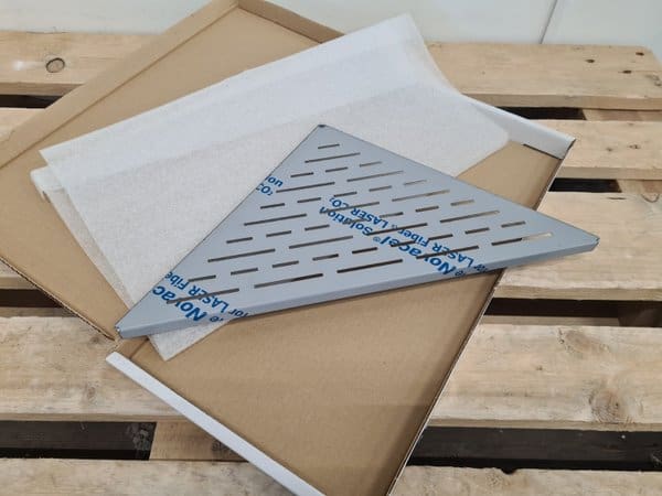 De driehoekige vorm past perfect in de hoek van je douche of badkamer, waardoor je optimaal gebruikmaakt van de beschikbare ruimte. Ideaal voor kleinere badkamers of als extra planchet naast een groter model.