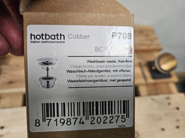 Hotbath Pal always open plug met schroef rond koper geborsteld PVD (schade)