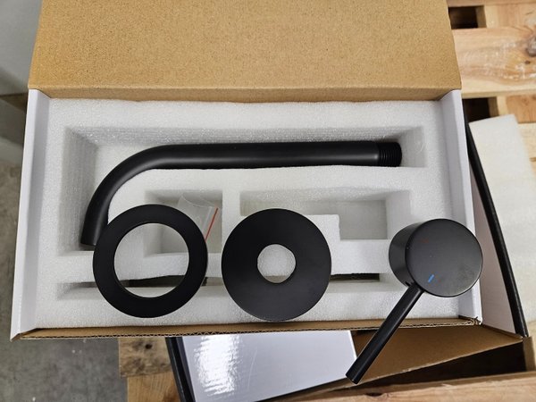 Inbouw Wastafelmengkraan Brauer Black Edition Coldstart Gebogen Uitloop Ronde Hendel Rechts Mat Zwart