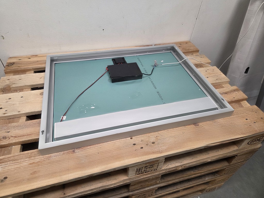 De spiegel is afgewerkt met een stevige aluminium rand van 4 cm dik, wat zorgt voor een moderne en luxe uitstraling. Dit maakt de spiegel niet alleen functioneel, maar ook een echte eyecatcher in het interieur.