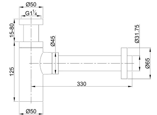Luxe sifon met muurbuis en rozet laag 1.1/4″, chroom