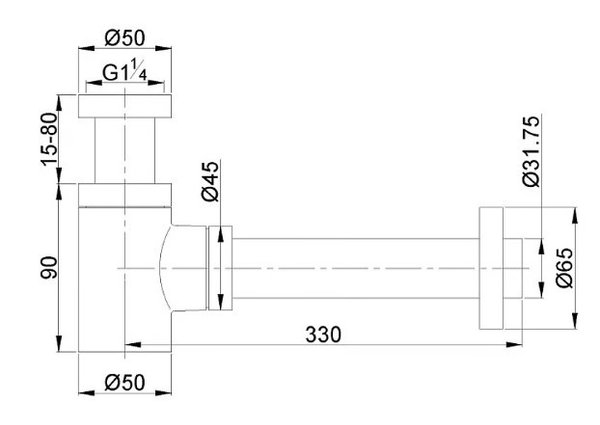 Luxe sifon met muurbuis en rozet laag 1.1/4″, mat wit