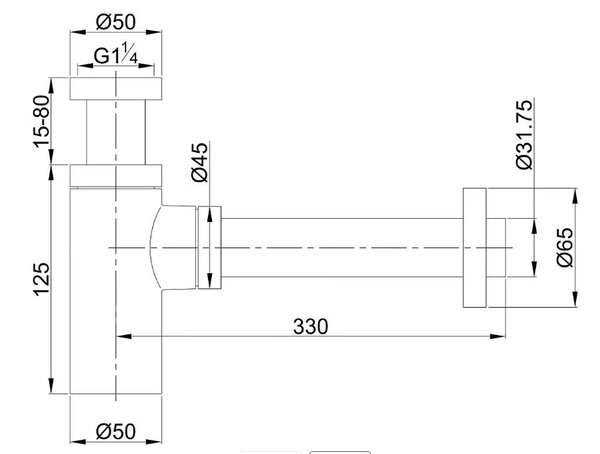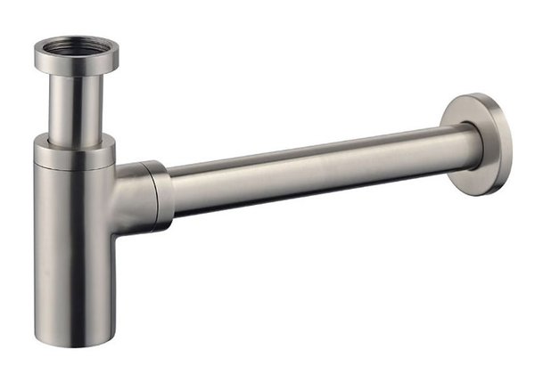 Luxe sifon met muurbuis en rozet laag 1.1/4″, RVS-look