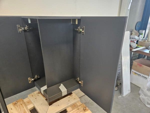 Antraciet kleurige binnenzijde en 2 plankjes per deurtje