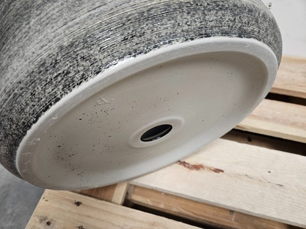 Breng stijl en karakter in je badkamer met deze ronde waskom van 36 x 13 cm in grijs reliëf met zwarte afwerking. De unieke reliëfstructuur en het moderne kleurcontrast geven een luxe uitstraling die perfect past in zowel moderne als industriële interieurs.