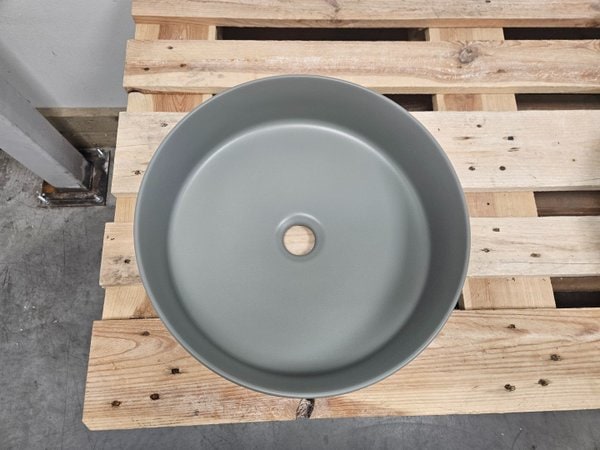 Deze keramische waskom in mat donkergrijs combineert strak design met praktische eigenschappen. De kleur geeft een stoere en moderne uitstraling, perfect voor badkamers met een minimalistische of industriële stijl.