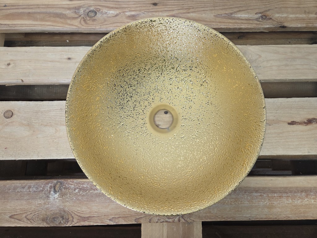 Deze gouden waskom komt prachtig tot zijn recht in combinatie met messing, goudkleurige of zwarte kranen en accessoires. Ideaal voor een luxe badkamerontwerp.