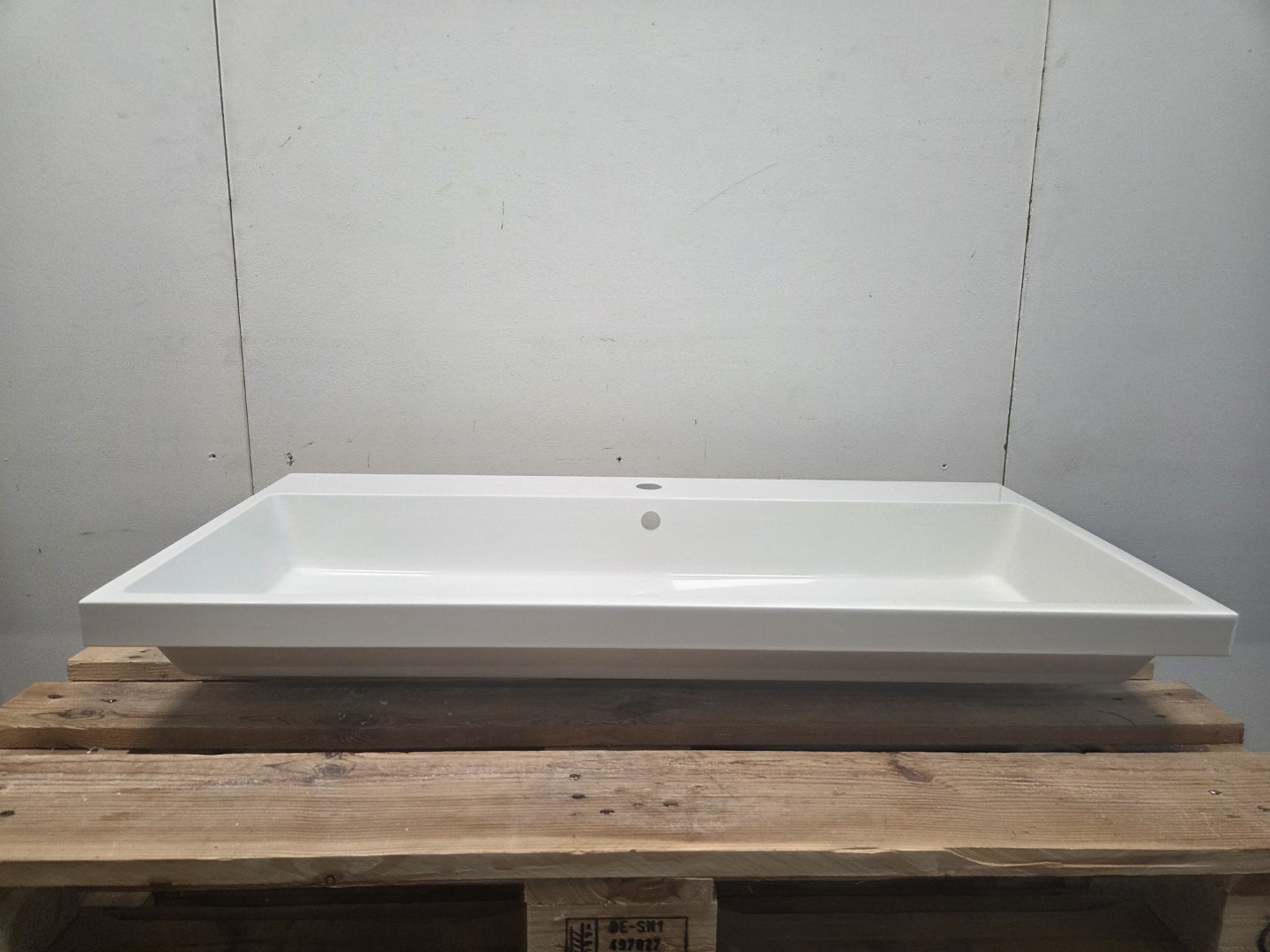 De wastafel is voorzien van één kraangat, geschikt voor een stijlvolle eenhendel- of opbouwkraan. Dankzij de royale breedte biedt deze wastafel extra comfort en gebruiksgemak, ideaal voor middelgrote tot grotere badkamers.