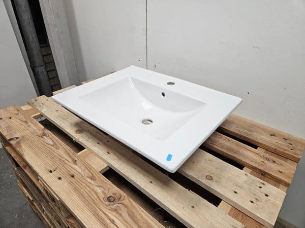 Wastafel 60 x 45,6 cm – Wit Keramiek met 1 Kraangat (nieuw)