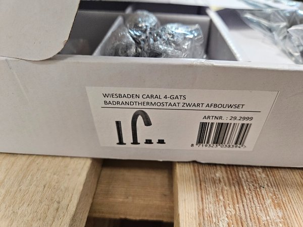 Geef je badkamer een luxe en moderne uitstraling met deze Wiesbaden Caral 4-gats badrandthermostaat afbouwset in mat zwart. Een stijlvolle oplossing voor een strak afgewerkt bad.